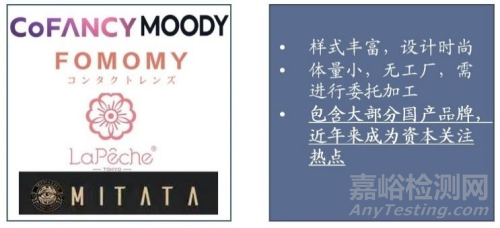 非自產(chǎn)品牌包含了目前絕大部分的國產(chǎn)品牌和部分日韓品牌。其特點(diǎn)是樣式豐富,設(shè)計時尚,產(chǎn)品周期較短,但體量較小,變化較大。近年來,國產(chǎn)彩瞳品牌成為資本關(guān)注熱點(diǎn)。