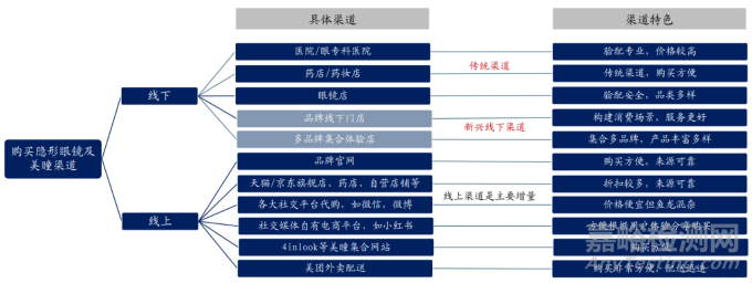 銷售渠道:線下以透明片為主,線上高增速、彩瞳百花齊放