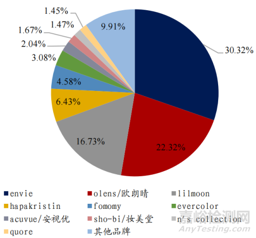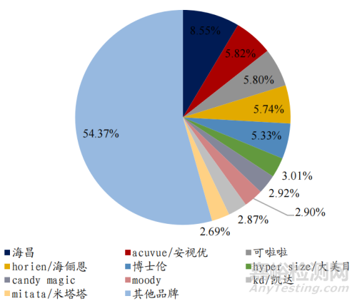 1、從品牌端看:先發(fā)優(yōu)勢導(dǎo)致品牌認(rèn)可度更高,彩瞳市場強(qiáng)營銷是關(guān)鍵: