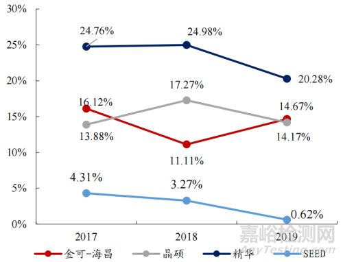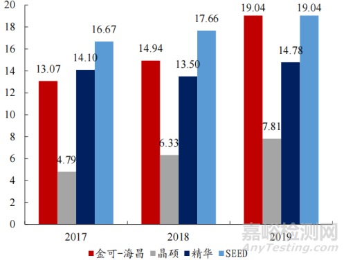 ▲ 部分上市隱形眼鏡廠商凈利率 (資料來源:精華光學(xué),晶碩光學(xué),金可國際,SEED,興業(yè)證券經(jīng)濟(jì)與金融研究院整理)