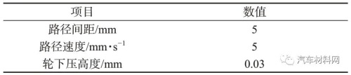 輥壓過程工藝參數設定不同對打印表面滾壓效果有很大影響。由表5可知,設置輥壓輪下壓幅度(即低于打印表面)高度為0.03 mm,輥壓速度為5 mm/s,速度較慢時滾壓效果更佳。但是應綜合輥壓效率對速度進行設定,輥壓路徑間距(即第一道輥壓結束后平移距離)為5 mm,路徑間距小于輥壓輪寬度可以進行層疊輥壓,同樣也需要考慮輥壓效率。
