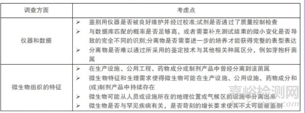 對(duì)于中間產(chǎn)品(如除菌過濾前取樣檢測微生物限度)微生物結(jié)果出現(xiàn)異常趨勢或超標(biāo)時(shí),建議在調(diào)查時(shí)根據(jù)風(fēng)險(xiǎn)程度采取相適應(yīng)的方法進(jìn)行鑒定分析。