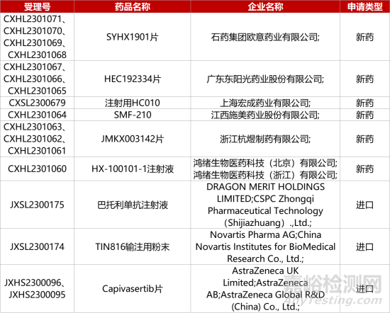 1. CDE新藥受理情況(10月10日)