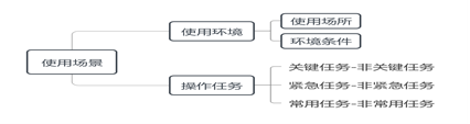 如圖1所示,使用場景是指注冊申請人所規(guī)定的醫(yī)療器械實(shí)際使用的場景因素,包括使用環(huán)境和操作任務(wù)。使用環(huán)境是指用戶操作醫(yī)療器械的實(shí)際環(huán)境,又可分為使用場所、環(huán)境條件,其中使用場所包括門診室、急診室、手術(shù)室、病房、救護(hù)車、家庭、公共場所等情況,環(huán)境條件包括空間、照明、溫度、濕度、氣壓、潔凈度、噪聲、振動、輻射等情況。操作任務(wù)是指用戶操作醫(yī)療器械以實(shí)現(xiàn)特定目標(biāo)的行動或行動序列,本指導(dǎo)原則重點(diǎn)關(guān)注醫(yī)療活動相關(guān)操作任務(wù),暫不考慮清潔、運(yùn)輸、安裝、維修、處置等操作任務(wù)(醫(yī)療器械安全標(biāo)準(zhǔn)若有相應(yīng)要求除外),待時機(jī)成熟時納入考量。不過注冊申請人需考慮全部操作任務(wù)的人因設(shè)計要求。