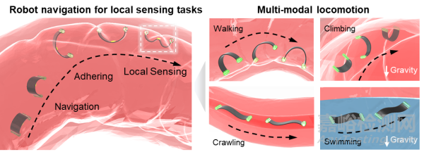 當將磁場信息與機器人的形狀信息結(jié)合并輸入力學模型之中,組織的生理特性就能被精準測量出來。與之前報道的用于感知組織特性的植入式電子傳感器、磁性微型設備和膠囊內(nèi)窺鏡相比,該方法利用機器人的多模式運動能力來穿越組織屏障,故能以最小的侵入性進入封閉的狹小的空間。