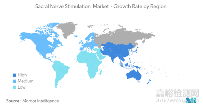 根據Mordor intelligence的數據,2019年全球骶骨神經調控(也稱為骶神經刺激)市場規(guī)模為22.8億美元,預計到2027年將達到33億美元,在預測期內(2022-2027年),骶神經刺激市場的復合年增長率預計為5.5%。其中北美地區(qū)在骶神經刺激市場占有更大份額,而亞太地區(qū)的增勢最為強勁。