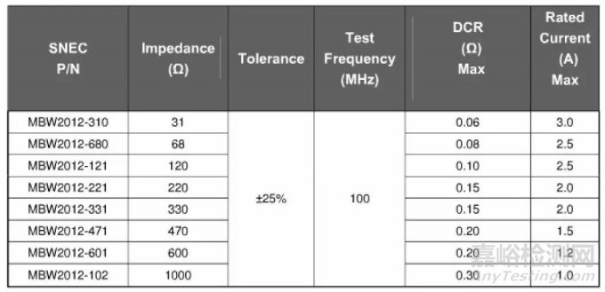 2、額定電流RatedCurrent(mA):表示磁珠正常工作時的最大允許電流。