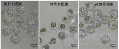 記錄囊胚數(shù)后,計算囊胚形成率。陽性對照組的囊胚形成率應(yīng)顯著低于陰性對照組陰性對照組囊胚形成率280%。如果檢測組的囊胚形成率280%,表示檢測樣品對胚胎發(fā)育沒有潛在毒性。