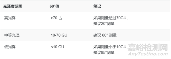 選擇光澤度測量角度