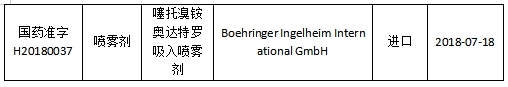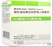 圖示為噻托溴銨奧達(dá)特羅吸入噴霧劑的外包裝