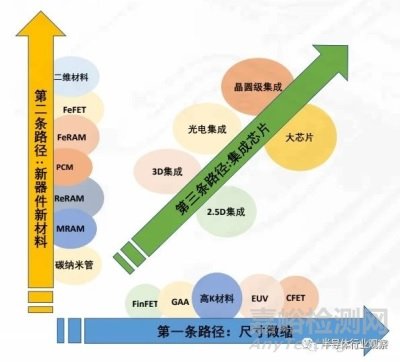 從技術(shù)上看,目前主要有三條提升芯片性能的發(fā)展路徑,如圖 2.2 所示,三條技術(shù)路徑從不同維度共同推動(dòng)集成電路的發(fā)展。