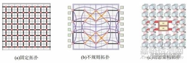 從互連網(wǎng)絡(luò)的通信效率進(jìn)行考慮,網(wǎng)絡(luò)拓?fù)浣Y(jié)構(gòu)從固定、簡(jiǎn)單的通用拓?fù)浣Y(jié)構(gòu)演進(jìn)到不規(guī)則和可重構(gòu)拓?fù)浣Y(jié)構(gòu),以適配不同的應(yīng)用數(shù)據(jù)傳輸需求。通用互連網(wǎng)絡(luò)的拓?fù)浣Y(jié)構(gòu)設(shè)計(jì)簡(jiǎn)便,適用于多種數(shù)據(jù)通信場(chǎng)景。但是通用性和性能互為制約,通用拓?fù)浣Y(jié)構(gòu)設(shè)計(jì)并不能提供最高的通信效率。因此,不規(guī)則和可重構(gòu)的互連拓?fù)浣Y(jié)構(gòu)以降低通用性為代價(jià),提供了更高性能的互連解決方案。
