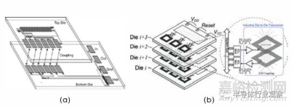 圖 3.12 基于 (a) 電容耦合 (b) 電感耦合的芯粒間無(wú)線互聯(lián)方式