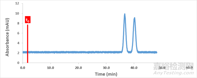 實際工作中,對于選擇性α我們所用到的區(qū)域一般都是1≤α≤2的區(qū)域。為什么應用僅僅在此區(qū)域內呢?筆者用以下案例為大家解讀。色譜分離中,一般保證溶質的K介于1≤K≤10區(qū)間內。假設某物質分離條件為4.6*250mm,5um的色譜柱,流速為1.0ml/min,此時t0≈2.5min。當某物質保留因子K1=1,若α=2,則相鄰物質K2=2,此時兩物質的保留時間分別為t1≈5.0min, t2≈7.5min,這種情況下,二者已經完全分離。因此選擇性α>2時,分離度Rs已經滿足要求,不必再改善分離。所以,選擇性α在1≤α≤2的區(qū)域才有改善的必要。