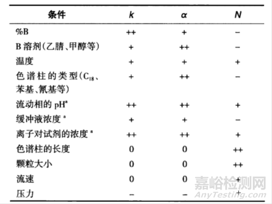 ++—主要影響,+—次要影響,-—相對影響較小,0—沒有影響,a— 對于可電離的溶質分子來說。