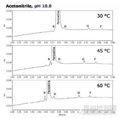 有幾個(gè)參數(shù)可以用來調(diào)整或優(yōu)化色譜分離效果。梯度斜率是一個(gè)用來操作以控制保留和選擇性的物理參數(shù)。但是,梯度斜率經(jīng)常在分離度和靈敏度之間做平衡考量。另外一個(gè)可以優(yōu)化的參數(shù)是溫度。每個(gè)化學(xué)過程都受溫度影響,溫度可以提供明顯的不同選擇性。