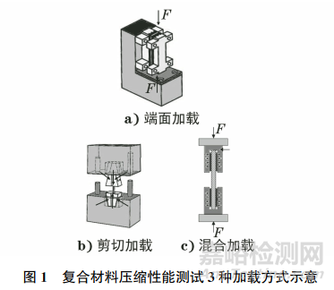 壓縮性能反映了復(fù)合材料承受壓力和抵抗沖擊的能力,壓縮性能測(cè)試可以得到材料的壓縮強(qiáng)度、彈性模量、屈服強(qiáng)度等參數(shù)。常見的聚合物基復(fù)合材料壓縮性能測(cè)試有3種不同的加載方式,分別為端面加載、剪切加載以及混合加載(見圖1)。端面加載常用的標(biāo)準(zhǔn)為 ASTM D695—2015 《硬質(zhì)塑料壓縮性能的標(biāo)準(zhǔn)試驗(yàn)方法》。剪切加載常用的標(biāo)準(zhǔn)為ASTM D3410/D3410M-03 《剪切荷載法測(cè)定帶無支撐標(biāo)準(zhǔn)截面的聚合母體復(fù)合材料抗壓特性的標(biāo)準(zhǔn)試驗(yàn)方法》和ISO 14126:1999 《纖維增強(qiáng)塑料復(fù)合材料 平面方向壓縮性的測(cè)定》。混合加載常用的標(biāo)準(zhǔn)為ASTM D6641/D6641-16 《使用組合加載壓縮(CLC)試驗(yàn)夾具測(cè)定聚合物基復(fù)合材料壓縮性能的標(biāo)準(zhǔn)試驗(yàn)方法》以及ISO 14126:1999。除此之外,考察復(fù)合材料開孔壓縮性能的常用標(biāo)準(zhǔn)為ASTM D6484/D6484M-14《聚合物基復(fù)合材料層壓板開孔抗壓強(qiáng)度的標(biāo)準(zhǔn)試驗(yàn)方法》,考察螺釘裝配后填孔壓縮性能的常用標(biāo)準(zhǔn)為 ASTM D6742/D6742M-02。