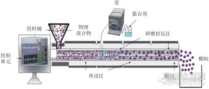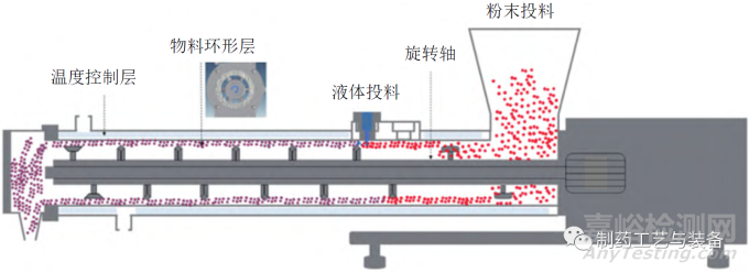 圖2 連續(xù)雙螺桿濕法制粒機(jī)示意圖[18]