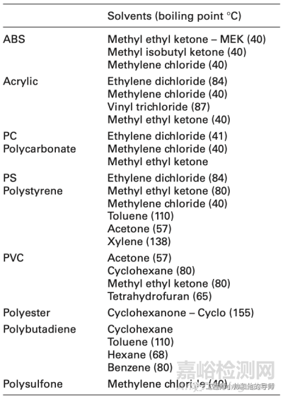 1)選擇能夠溶解塑料的合適溶劑(見表10.1)。