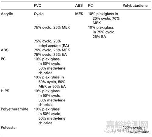 溶劑粘接的聚合物相容性示例: