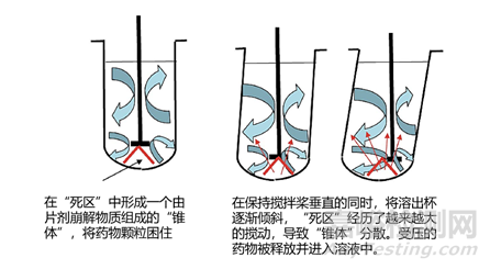 圖1 擾動研究示意圖表明在 USP 溶出杯底部存在一個“死區(qū)”。