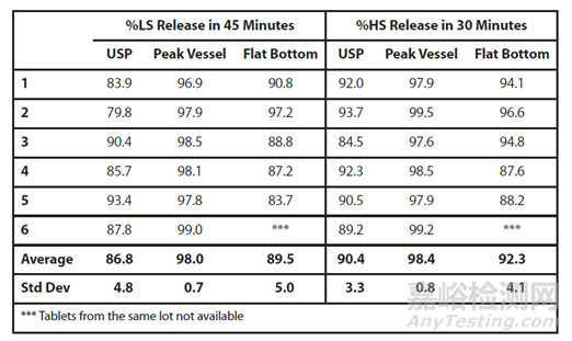 表3低溶解度LS和高溶解度HS藥物在USP標準溶出杯、平底杯和Peak杯中的釋放速率