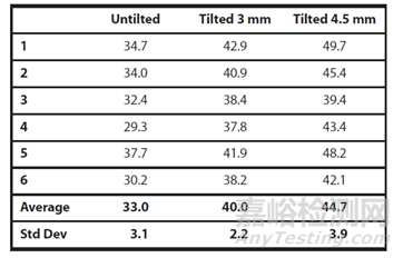 為了確定USP溶出杯中“死區(qū)”是否存在,進行了擾動研究。通過在每個溶出杯和溶出設備的底板之間插入墊片,使溶出杯傾斜,分別傾斜3毫米和4.5毫米。