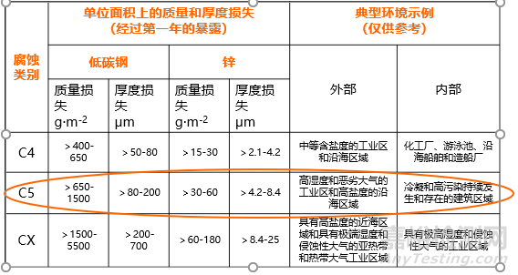 這個案列在沿海工業(yè)區(qū),沿海工業(yè)區(qū)一般都是能源,石油,化工企業(yè),所處的環(huán)境是高濕高鹽和高腐蝕,所以按下表選的環(huán)境類型是C5.