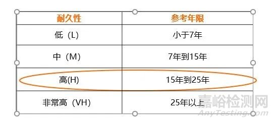 標(biāo)準(zhǔn)規(guī)定了以下4種不同的耐久性范圍: