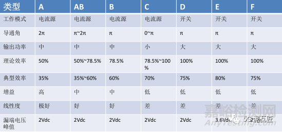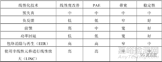傳統(tǒng)線性功率放大器具有較高的增益和線性度但效率低,而開(kāi)關(guān)型功率放大器具有很高的效率和高輸出功率,但線性度差。具體見(jiàn)下表: