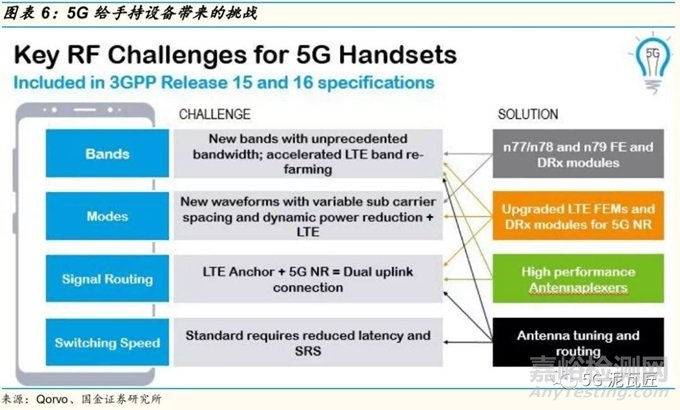 無(wú)論是在基站端還是設(shè)備終端,5G 給供應(yīng)商帶來(lái)的挑戰(zhàn)都首先體現(xiàn)在射頻方面,因?yàn)檫@是設(shè)備“上”網(wǎng)的關(guān)鍵出入口,即將到來(lái)的 5G 手機(jī)將會(huì)面臨多方面的挑戰(zhàn):