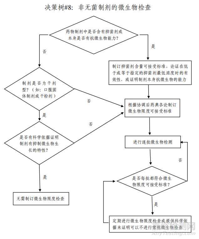 ▲圖1-ICH Q6A 決策樹#8(非無(wú)菌制劑的微生物限度檢查)