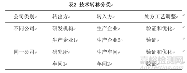 藥品技術(shù)轉(zhuǎn)移,是指把實驗室研究開發(fā)階段已經(jīng)確立,但僅適用于實驗室規(guī)模產(chǎn)品的技術(shù)成果向商業(yè)化生產(chǎn)轉(zhuǎn)化。技術(shù)轉(zhuǎn)移的內(nèi)容包括處方工藝、中控項目、原輔包和成品標(biāo)準(zhǔn)、檢驗方法及其它與產(chǎn)品質(zhì)量相關(guān)聯(lián)的技術(shù)、知識等。隨著中國MAH制度的實施,越來越多的企業(yè)選擇將部分藥品研發(fā)則委托給專業(yè)的CRO,導(dǎo)致研究所進(jìn)入公司生產(chǎn)車間產(chǎn)生二次轉(zhuǎn)移,從而導(dǎo)致技術(shù)轉(zhuǎn)移過程越發(fā)復(fù)雜[1]。按照涉及主體不同,技術(shù)轉(zhuǎn)移大體可以分為以下幾類(表2)。以同一公司研究所轉(zhuǎn)移至生產(chǎn)車間為例,具體流程主要為:成立技術(shù)轉(zhuǎn)移項目組,召開項目轉(zhuǎn)移啟動會,指定項目組長。確定需要轉(zhuǎn)移的文件清單。由接收方根據(jù)風(fēng)險評估結(jié)果制定,理清轉(zhuǎn)出方和轉(zhuǎn)入方任務(wù)清單。實施中試/工藝驗證并形成工藝驗證報告。工藝驗證通過及完成注冊申報/申請備案要求的穩(wěn)定性研究后,按照《化學(xué)藥品新注冊分類申報資料要求(試行)》、《ICH M4人用藥品注冊通用技術(shù)文檔》及相關(guān)指導(dǎo)原則等要求準(zhǔn)備申報/備案資料待資料確認(rèn)完整無誤后進(jìn)行注冊申報或備案?,F(xiàn)場核查、技術(shù)審評均通過后獲得生產(chǎn)批文或完成備案,最終完成資料移交,正式生產(chǎn)。具體流程圖參考如圖1所示。
