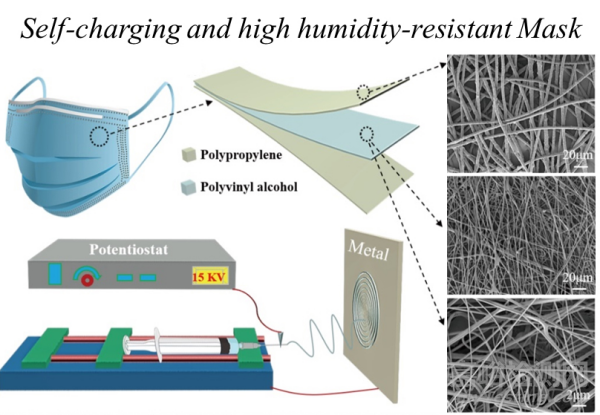 ▲圖1. PVA基耐濕、自充電口罩的結(jié)構(gòu)設計與微觀形貌