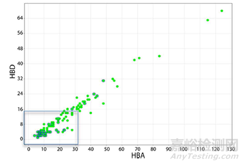 圖2. 口服(藍(lán)色)與腸道外(綠色)給藥多肽的HBA和HBD分布,來(lái)源:ChemMedChem