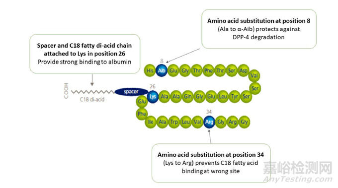 圖2:索馬魯肽藥物分子結(jié)構(gòu)示意圖(皮下給藥制劑)[4]