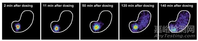 索馬魯肽作的口服制劑就是和SNAC一起構(gòu)成的配方。肽類藥物主要在腸道中被吸收而口服索馬魯肽改變了肽的吸收部位,使其在胃部被吸收,而不是在腸道中。在吸收的過(guò)程中,SNAC在胃部的溶解能夠局部升高胃的pH值,進(jìn)而提高索馬魯肽的溶解度,且將胃中酸性環(huán)境改變?yōu)橹行原h(huán)境,使肽酶失活,避免索馬魯肽被胃中的肽酶降解。實(shí)驗(yàn)表明,SNAC的親脂性使其能夠嵌入到細(xì)胞膜上,幫助索馬魯肽被細(xì)胞快速吸收。索馬魯肽在胃中的溶解如圖5所示[9]。