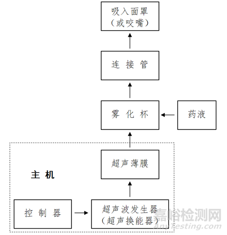 (1)醫(yī)用超聲霧化器一般由主機(jī)、霧化杯、連接管、咬嘴或吸入面罩組成,其中的主機(jī)一般由超聲波發(fā)生器(超聲換能器)、超聲薄膜、送風(fēng)裝置、調(diào)節(jié)和控制系統(tǒng)組成。