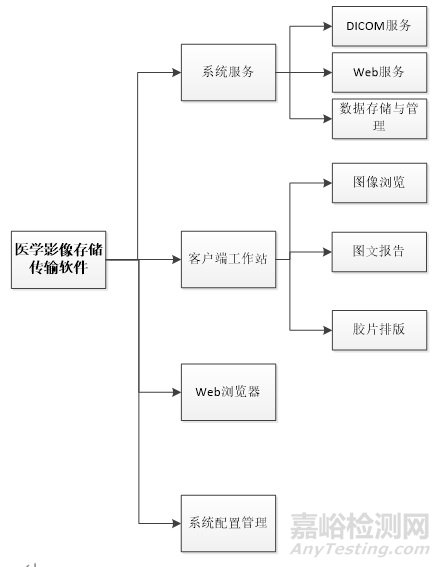 產(chǎn)品結(jié)構(gòu)應(yīng)明確PACS的產(chǎn)品架構(gòu)和產(chǎn)品規(guī)模,其中產(chǎn)品架構(gòu)應(yīng)描述PACS的技術(shù)架構(gòu),如單機(jī)(客戶端)、CS架構(gòu)、BS架構(gòu)、混合式架構(gòu)(兼具CS、BS架構(gòu));產(chǎn)品規(guī)模應(yīng)明確PACS的預(yù)期使用規(guī)模,如單機(jī)PACS、科室級(jí)PACS、院級(jí)PACS和區(qū)域級(jí)PACS。