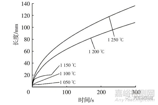 計算結(jié)果表明,NbTiC 相的析出PTT 曲線“鼻尖”溫度在1 050~1 100 ℃,在1 200 ℃及以上溫度300 s 時間等溫時尺寸可以達到130~140 nm,在1 200 ℃以下等溫時溫度越低,碳化物長大越緩慢,在1 050 ℃等溫時尺寸長大到約5 nm 后就不再增長。