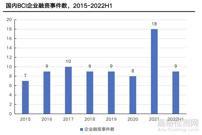 腦機接口行業(yè)融資事件爆發(fā),資本加速布局。馬斯克的Neuralink公司致力于腦機接口技術的研究,近年來發(fā)布多項研究成果引發(fā)社會廣泛關注,使得腦機接口從實驗室被推向了公眾視野,成為當下投資熱點。2021年是國內(nèi)融資事件近年來最高達18起,2022年上半年仍有9起融資事件,表明投資機構正加速對腦機行業(yè)的投資布局。