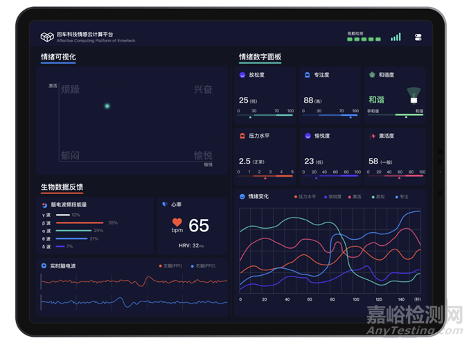 該產(chǎn)品在現(xiàn)有虛擬現(xiàn)實(VR)技術基礎上,融合了腦電和心率傳感器,實現(xiàn)了對七種不同情感狀態(tài)的準確識別,包括注意力、放松度、壓力水平、愉悅度、激活度、和諧度以及睡眠狀態(tài)。