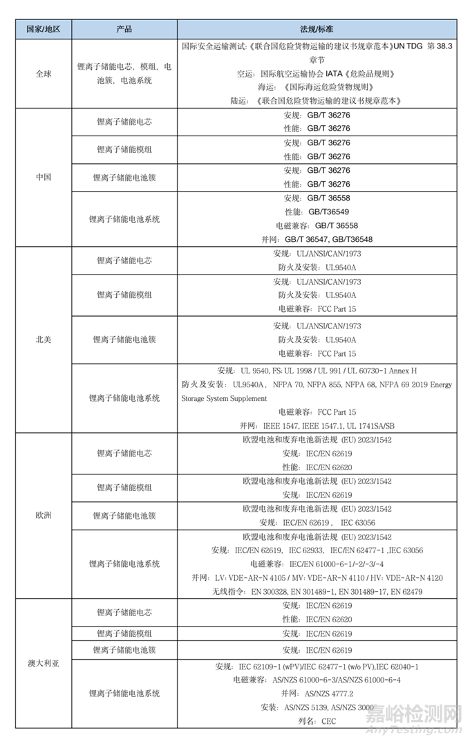 2、鋰離子儲(chǔ)能電池運(yùn)輸和市場(chǎng)準(zhǔn)入的法規(guī)和標(biāo)準(zhǔn)