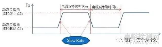 依規(guī)格要求設定負載電流的起、止點,負載電流的上升、下降速率(Slew Rate)及負載電流的變化周期;一般負載電流的上升和下降速度設置為2.5A/μs,變化周期一般為20ms。