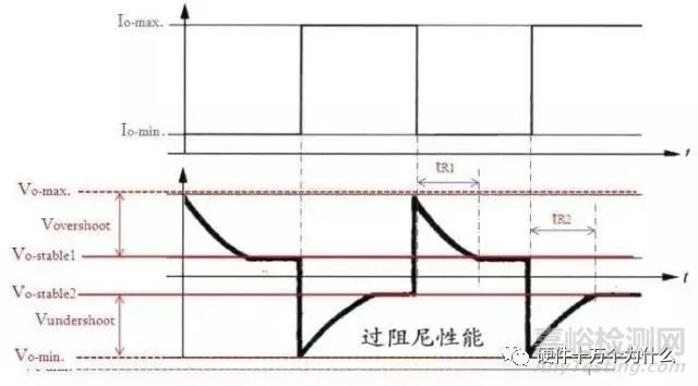有無Overshoot、Undershoot,若有,則以實際輸出穩(wěn)態(tài)值為基準,測量Vovershoot、Vundershoot及恢復時間Tr(Tr:從第一個過沖最大值開始到輸出進入穩(wěn)態(tài)值所需時間),
