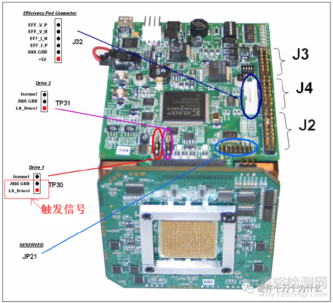 2、在測試瞬態(tài)電壓時,需要一個觸發(fā)信號。將有源探頭的信號端固定LB_Drive1管腳上(如下圖TP30的PIN1所示),地端固定在TP30的PIN2;