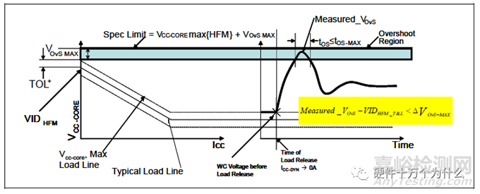 Dynamic Current Loadline是測試當負載電流Icc發(fā)生快速、大幅度變化時,產生的瞬變電壓值是否超過過沖指標。