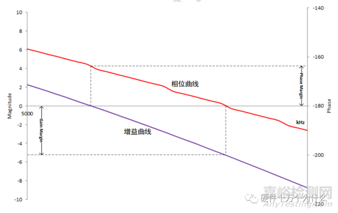 需要注意的是我們在閉環(huán)的情況下測量開環(huán)參數,測試結果的相位會從180°開始逐步將到0°,這與理論上直接斷開環(huán)路求環(huán)路增益得到的從 0°開始降到-180°不同,所以這種情況下我們計算相位裕度的時候應該是參考 0°而不是-180°。