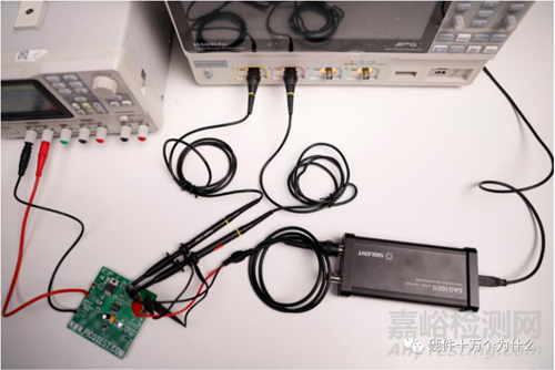 為避免過多的噪聲耦合到紋波測試,應用盡可能小的環(huán)路,避免耦合的噪聲過大。一般的示波器探頭不能直接使用,需用專用示波器探頭或者使用同軸電纜小環(huán);并且測量點應在電源輸出端上,若測量點在負載上則會造成極大的測量誤差。