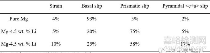 表1.純Mg與Mg-4.5 wt. % Li合金在不同應(yīng)變量下滑移跡線統(tǒng)計(jì)結(jié)果